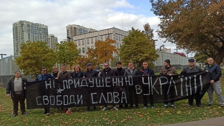 Участники акции обратились к американским дипломатам с требованием отреагировать на массовые системные нарушения свободы слова, которые происходят в Украине.