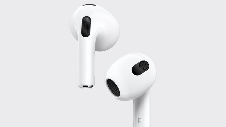Американская  компания Apple презентовала AirPods 3. Третье поколение наушников имеют визуальное сходство с AirPods Pro - укороченные "ножки", однако без резиновых насадок.