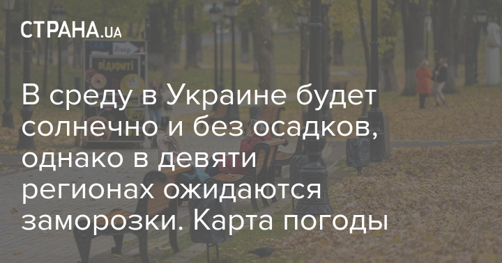 В среду, 19 октября, в Украине ожидается комфортная солнечная погода. Днем столбики термометров покажут от +9 до +16 градусов, однако ночью в некоторых регионах ожидаются заморозки.
