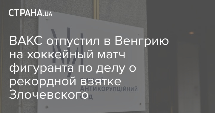 По решению Высшего антикоррупционного суда, фигурант дела о даче взятки в шесть миллионов долларов  директору НАБУ Артему Сытнику и, на тот момент, главе САП Назару Холодницкому может посетить соревнования по хоккею в Венгрии, передают "Украинские новости"