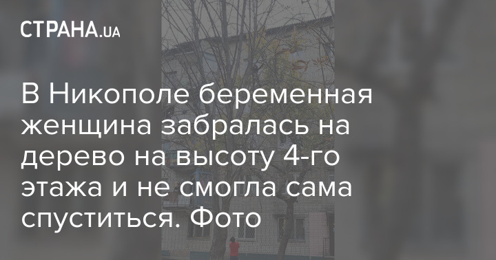 В Никополе беременная женщина забралась на дерево на высоту 4-го этажа и не смогла сама спуститься. Фото