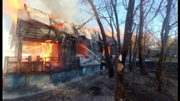 В Киеве горела деревянная баня. Фото: ГСЧС Киева
