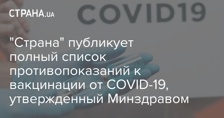 "Страна" публикует полный список противопоказаний к вакцинации от COVID-19, утвержденный Минздравом