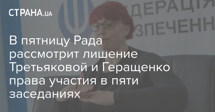 В пятницу, 5 ноября, Верховная Рада рассмотрит лишение народных депутатов Галины Третьяковой (фракция "Слуги народа") и Ирины Геращенко ("Европейская солидарность") права участвовать в пяти пленарных заседаниях.
