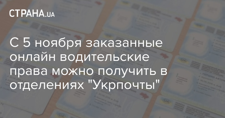 В Украине с пятницы, 5 ноября, водительские права, заказанные онлайн, можно получить в любом отделении "Укрпочты".