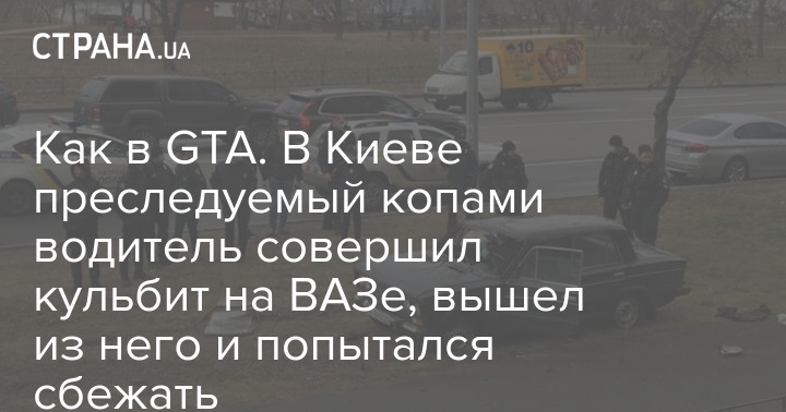 Как в GTA. В Киеве преследуемый копами водитель совершил кульбит на ВАЗе, вышел из него и попытался сбежать