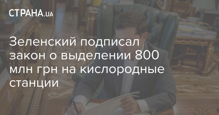 Президент Украины Владимир Зеленский подписал законопроект об увеличении расходов на закупку кислородных станций для ковид-больниц на 800 миллионов гривен, который 4 ноября приняла Верховная Рада.