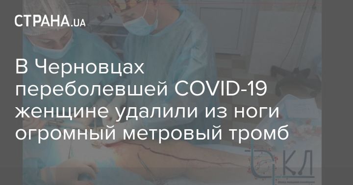 В Черновцах пациентке, переболевшей коронавирусом, удалили из ноги гигантский тромб длиной более метра. По мнению врачей, тотальный тромбоз конечностей часто наблюдается у пациентов, перенесших COVID-19.