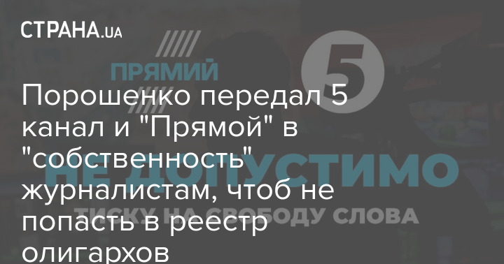 Объединение двух каналов Порошенко из-за вступления в силу "антиконституционного закона про олигархов". прокомментировал телеграм-канал "Политика Страны".