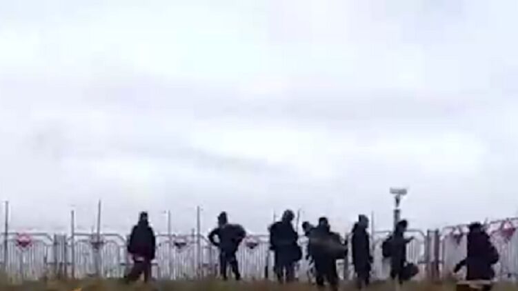 Утром в пятницу, 12 ноября, группа мигрантов на белорусской границе прорвалась в Польшу. Они идут вдоль польской ограды.