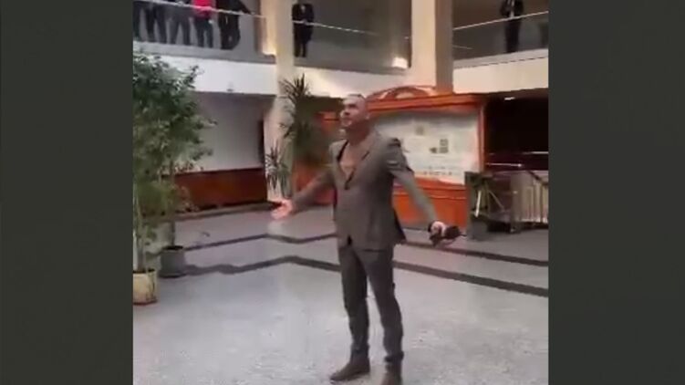 "Хотите посмотреть, как выглядит коррупционная система Владимир Зеленский изнутри?! Вот видео как обновленный в должности Тельбизов, ломавший руки оператору программы "Схемы", словно "воин света" возвращается на работу в "Укрэксимбанк". Это животное под безумные овации и улюлюканье заходит в головной офис банка, как настоящий герой", - пишет Лерос.