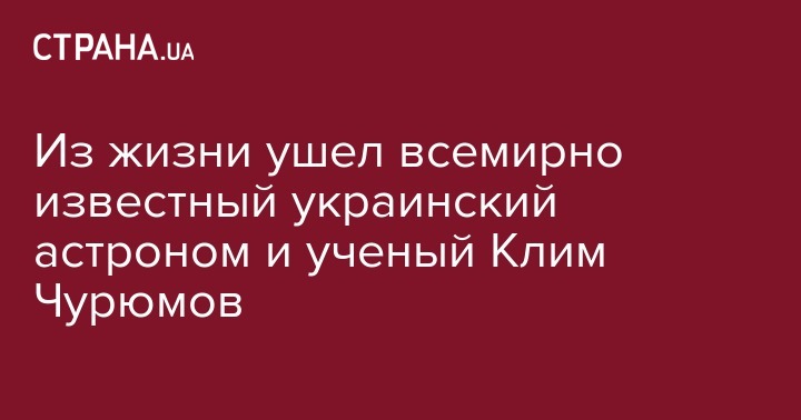 Сегодня в субботу, 15 октября, ушел из жизни на 80-м году всемирно известный украинский ученый, астроном и исследователь комет, член-корреспондент Национальной академии наук Украины Клим Чурюмов. Об этом рассказала заместитель директора Киевского планетария Елена Дирдовская, сообщает Интерфакс.