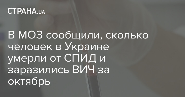 В октябре 2021 года в Украине официально зарегистрировали 945 новых случаев заражения ВИЧ-инфекцией, у 231 пациента диагностировали СПИД, а 136 человек от СПИДа умерли. Об этом сообщает Центр общественного здоровья при Минздраве.
