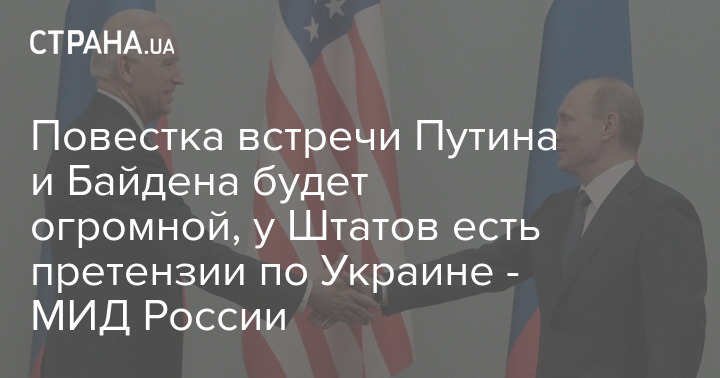 Повестка встречи Путина и Байдена будет огромной, у Штатов есть претензии по Украине - МИД России