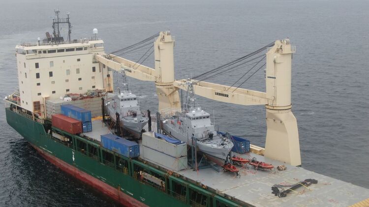 Во вторник, 23 ноября, американский сухогруз Ocean Grant с двумя патрульными катерами типа Island, которые предназначены для усиления военно-морского флота Украины и получили названия "Фастов" и "Сумы", прибыл в порт Одессы.