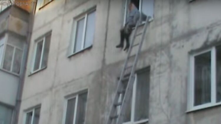 В Сумской области пенсионерке, которая сидела на окне, помогли сотрудники ГСЧС. Источник: YouTube