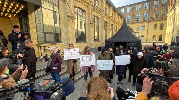 Журналисты стоят под "Арсеналом". Фото: "Страна"