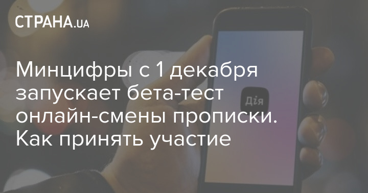 Команда Министерства цифровой трансформации запускает с 1 декабря бета-тестирование онлайн-прописки на портале "Дия". Об этом в Telegram сообщает пресс-служба ведомства.