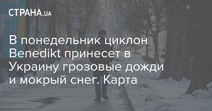 В понедельник циклон Benedikt принесет в Украину грозовые дожди и мокрый снег. Карта