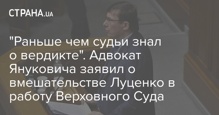 Экс-генпрокурор Украины Юрий Луценко заявил, что "украинский суд всеми своими тремя инстанциями осудил Януковича за совершение государственной измены", еще до того, как Верховный Суд вынес решение по делу о потере Крыма. Это можно расценивать как вмешательство в работу Верховного Суда.