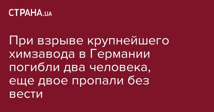 При взрыве крупнейшего химзавода в Германии погибли два человека, еще двое пропали без вести