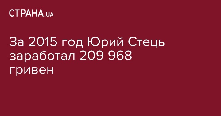 За 2015 год Юрий Стець заработал 209 968 гривен