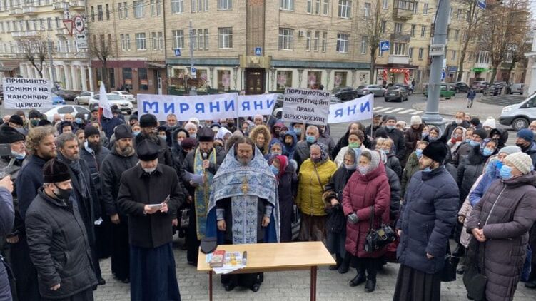 В пятницу, 3 декабря, в Виннице, где верующие УПЦ объявили войну "черным регистраторам", прошло молитвенное стояние возле здания областной администрации. Целью акции было  привлечь внимание к "незаконной перерегистрации" религиозных общин УПЦ в ПЦУ.