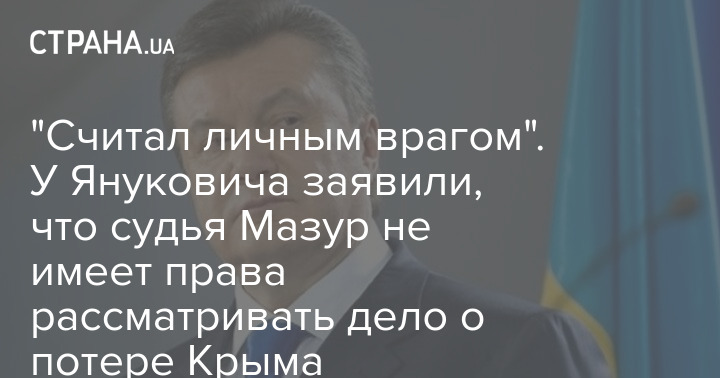 Представитель экс-президента Украины Виктора Януковича Юрий Кирасир заявил, что в судейской коллегии в деле о потере Крыма не имеет права находиться судья Верховного суда Николай Мазур, поскольку тот считает бывшего главу государства личным врагом.
