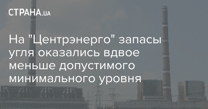 В Украине запасы угля на государственных тепловых электростанциях компании "Центрэнерго" в два раза ниже минимально допустимого уровня.