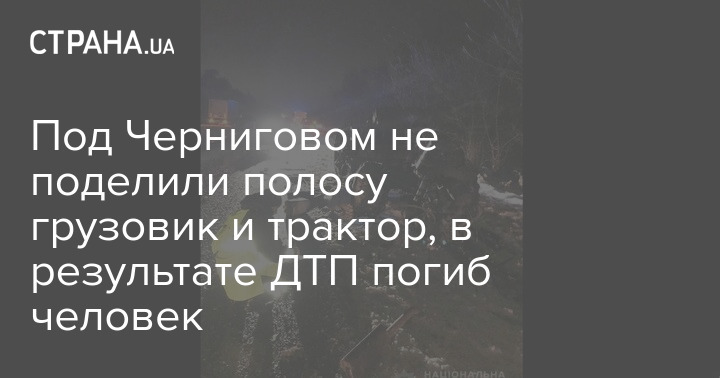 Полиция Черниговской области устанавливает обстоятельства смертельного ДТП с участием грузовика и трактора. Оно произошло около 16:30 на автодороге "Киев - Чернигов - Новые Яриловичи" вблизи села Ровнополье Черниговского района.