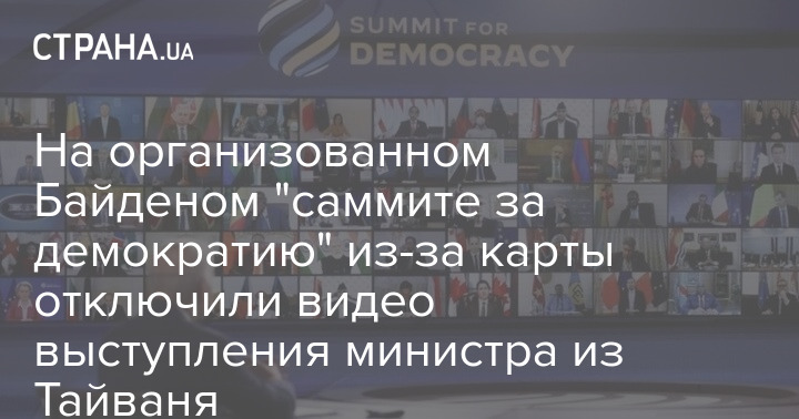 Во время проходившей онлайн панельной дискуссии на организованном США "саммите за демократию" выступление министра цифровых технологий Тайваня Одри Тан по настоянию Белого дома было переведено в режим без видео. Это произошло после появления в эфире карты, на которой Тайвань был выделен отдельным цветом от КНР, считающей остров своей территорией.
