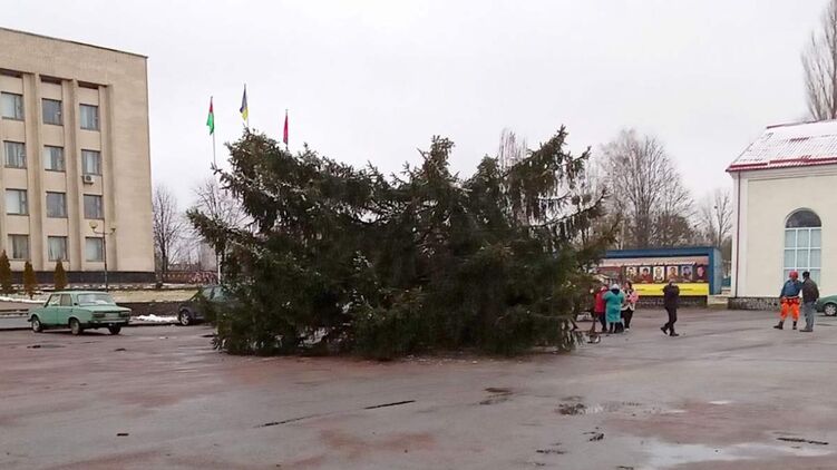 Елка сломалась пополам. Фото: tvijromaniv.in.uа