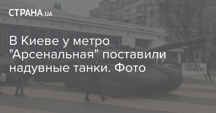 В четверг, 16 декабря, в Киеве возле станции метро "Арсенальная" появились надувные танки. Рядом с надувной техникой мужчины держат плакат с надписью: "Я надул танки, а военные надули меня".