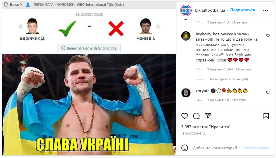 После победы украинца Дениса Беринчика над россиянином Исой Чаниевым, в соцсетях появлялись посты поздравления боксера с победой. Под одним из таких заметок Григорий Козловский оставил комментарий, в котором негативно отозвался о Ломаченко и Усике.