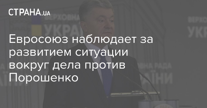 "Евросоюз наблюдает за ситуацией по поводу сообщения подозрения бывшему президенту Порошенко. Главными составляющими верховенства права являются надлежащая процедура, независимость, беспристрастность правосудия, справедливость, прозрачность судебного процесса. Учитывая это, ЕС будет отслеживать развитие событий", - говорится в сообщении ЕС.