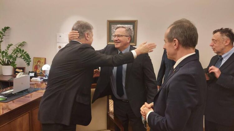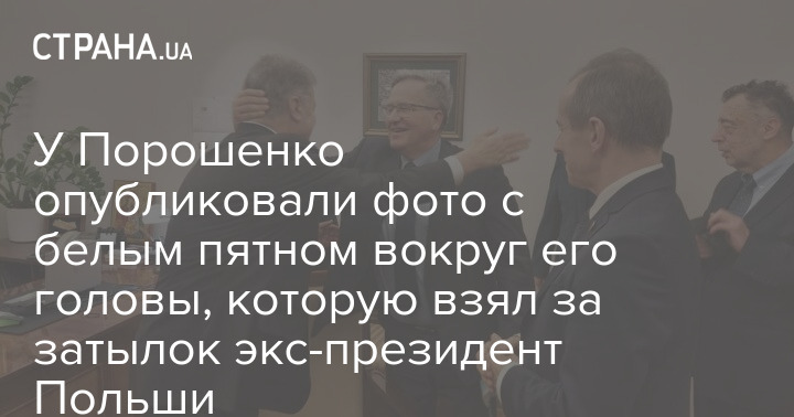 Сегодня экс-президент Украины и лидер "Евросолидарности" Петр Порошенко встретился с бывшим президентом Польши Брониславом Коморовским. На фотографии со встречи двух политиков пользователи сети заметили необычный белый свет над головой Порошенко, которую взял за затылок Коморовский.