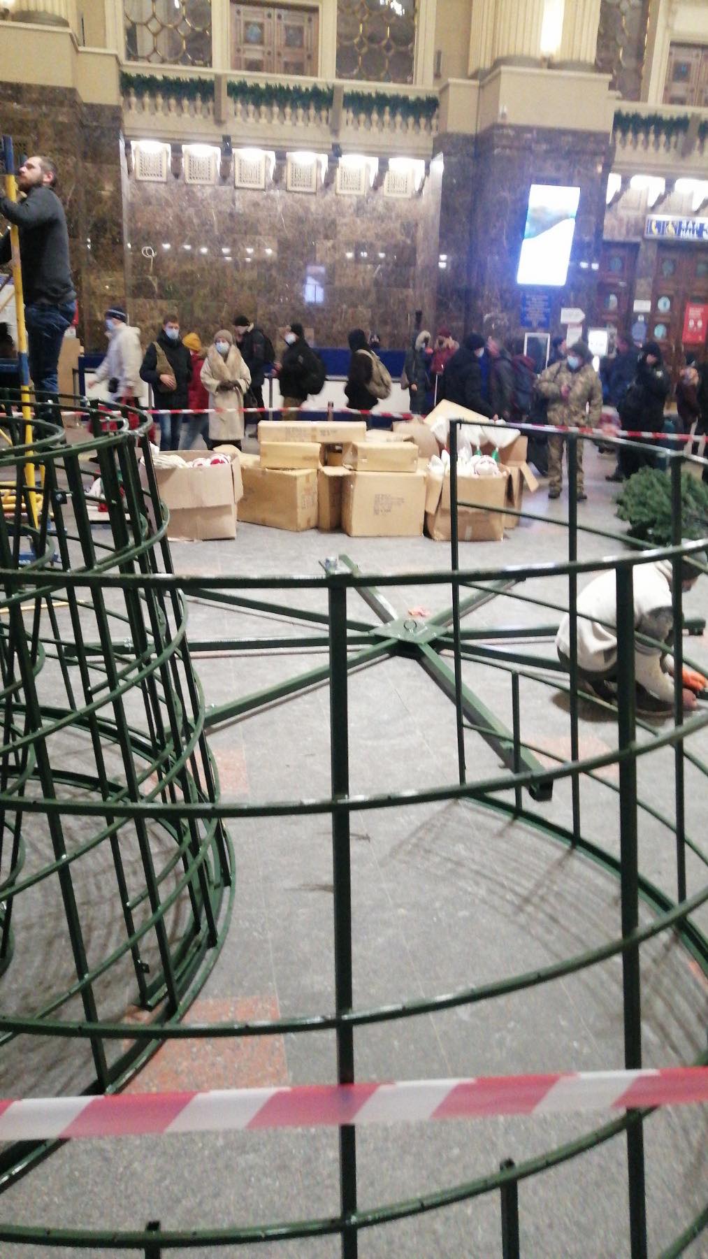 На Центральном железнодорожном вокзале Киева произошла череда предрождественских "чудес" с новогодней елкой.