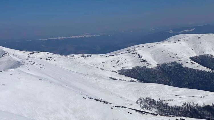 На горе Поп Иван Черногорский - одной из самых высоких вершин Карпат на границе Ивано-Франковской и Закарпатской областей - вчера также было снежно.