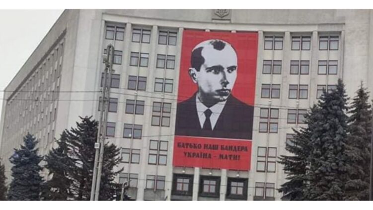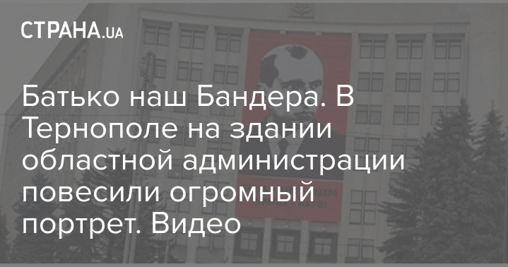 Батько наш Бандера. В Тернополе на здании областной администрации повесили огромный портрет. Видео
