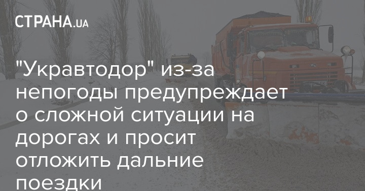 "Укравтодор" из-за непогоды предупреждает о сложной ситуации на дорогах и просит отложить дальние поездки