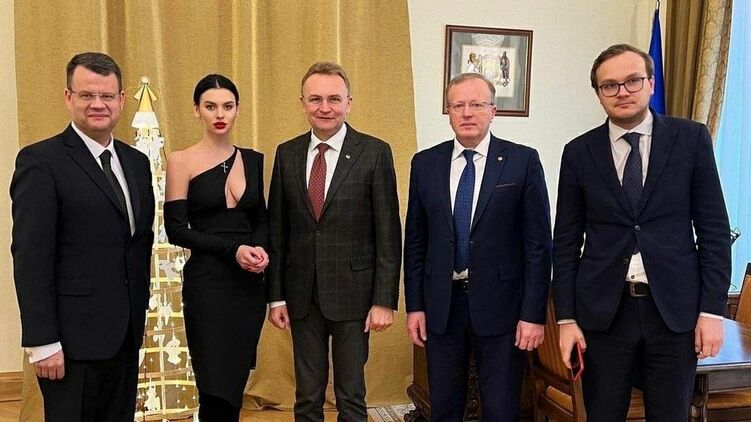 Напомним, недавно мэр Львова Садовой опубликовал фото, на котором в компании чиновников была запечатлена девушка в откровенном платье. Как выяснилось, на снимке была Кристина Тышкун - помощница замминистра образования Украины. Девушка была ярко накрашена: ее губы были подведены красной губной помадой. На ней было надето облегающее вечернее платье с большим вырезом на груди. Образ дополнял крестик, надетый поверх платья.