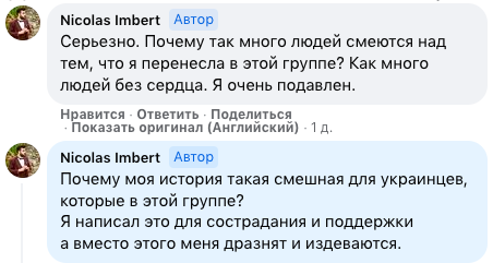Но в итоге, не дожидаясь окончания изоляции (если, конечно, он на самом деле заболел коронавирусом), аспирант отправился во Францию, откуда заявил, что написал заявление в полицию и посольство по факту изнасилования. О своей истории Имберт также сообщил в группе на Facebook украинской диаспоры в США. Правда, там он не нашел поддержки и понимания.