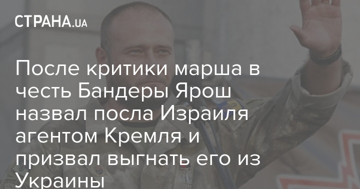 После критики марша в честь Бандеры Ярош назвал посла Израиля агентом Кремля и призвал выгнать его из Украины