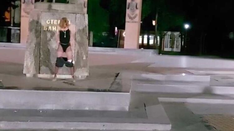 В сети появилось видео, как киевлянка помочилась под памятником Бандеры во Львове