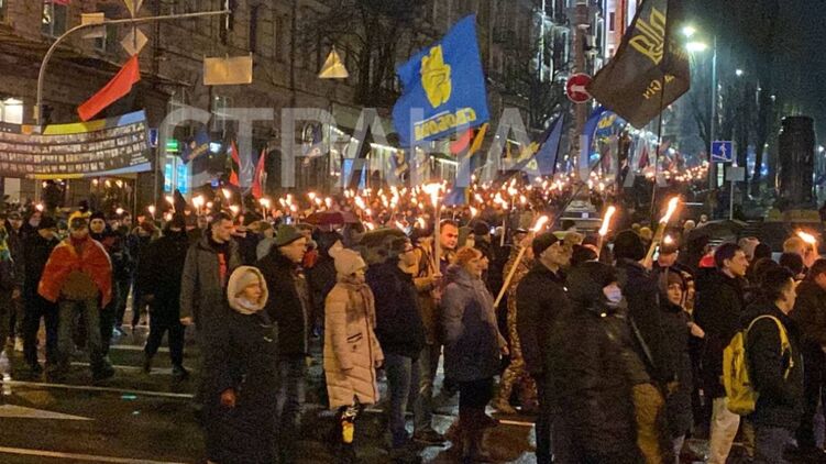 "Страна" писала, что в Киеве первый день нового года прошел марш националистов в честь одного из лидеров Организации украинских националистов Степана Бандеры - 1 января исполнилось 113 лет со дня его родления. Как проходил ставший уже традиционным киевский марш в честь Бандеры, мы подробно рассказывали в онлайн-репортаже.