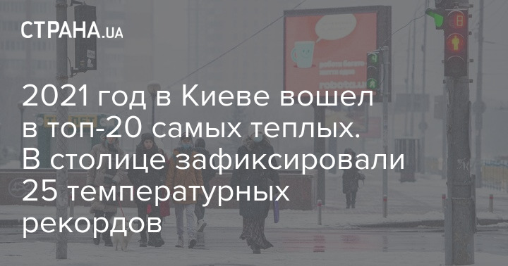 2021 год в Киеве стал одним из самых теплых за последние 20 лет. Средняя температура воздуха в столице составила +9,2 градуса, что на 0,2 градуса больше климатической нормы 1991-2020 годов. Кроме того, в течение 2021 года в Киеве зафиксировали 25 температурных рекордов.