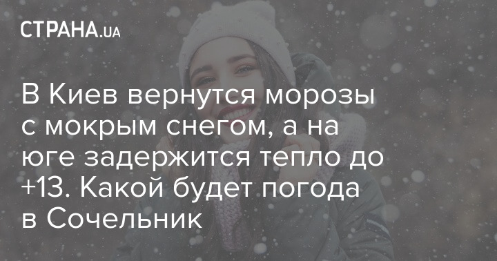 Накануне Рождества в Украину вернутся морозы с мокрым снегом, на западе и севере страны похолодает до -1 мороза, а на юге по-прежнему будет до +13 градусов. Об этом сообщает Укргидрометцентр