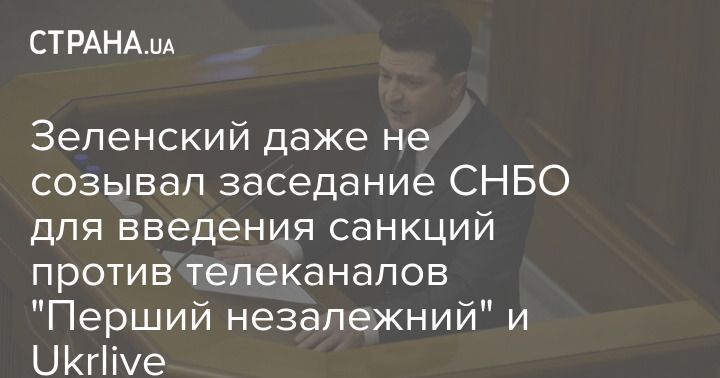 Журналисты выяснили, что президент Владимир Зеленский для введения 28 декабря 2020 года санкций против медиахолдинга "Новости" (в который входят "NewsOne", "ZiK", "112 Украина", "Перший незалежний" и "Ukrlive"), ООО "Тайм медиа" (логотип "Перший незалежний") и ООО "Телепростір" (логотип "Ukrlive"), не собирал перед этим заседание СНБО.
