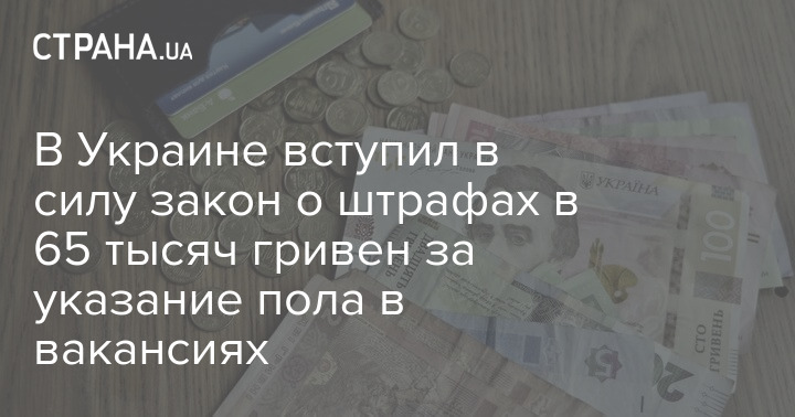 В Украине вступил в силу закон о штрафах в 65 тысяч гривен за указание пола в вакансиях