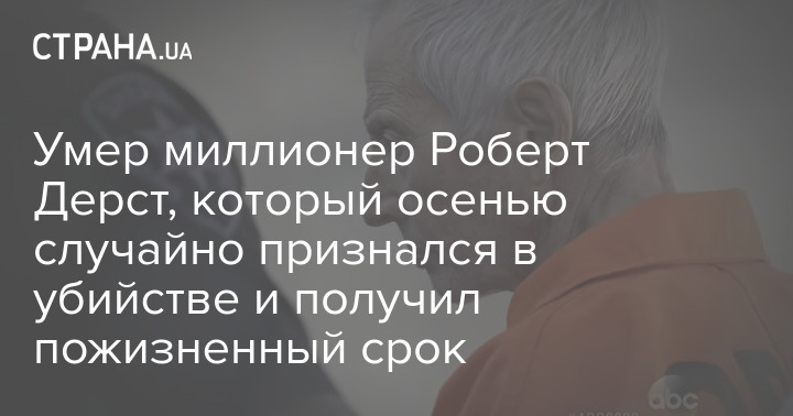 Миллионер Роберт Дерст, который осенью 2021 года случайно признался в убийстве своей знакомой, отбывал пожизненное заключение в одной из тюрем Калифорнии, где ему стало плохо. Заключенного госпитализировали в больницу, однако 78-летний Дерст не справился с недугом и скончался в госпитале.